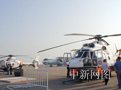 參展的香港直升機上紫荊花圖案非常醒目