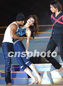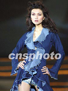 在2002年中國廣州(新塘)國際牛仔服裝節上,香港設計師俞儷軒的作品四日晚由中國名模姜培琳領銜展現在人們面前。作者:趙振清
