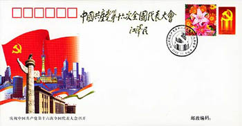 中新網11月5日電 為慶祝中國共產黨第十六次全國代表大會的召開,中國國家郵政局將于11月8日發行郵票《黃河壺口瀑布》和《鮮花》各一枚,中國集郵總公司當日還將發行紀念封一枚。中共中央總書記江澤民為紀念封題字:“中國共產黨第十六次全國代表大會”。