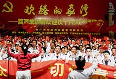 六日晚,廣州荔灣區(qū)舉行了一個(gè)大型的群眾迎“十六大”廣場歌會,三千多位市民和部隊(duì)官兵歡聚一堂大展歌喉,表達(dá)了對偉大祖國的熱愛,對即將召開的“十六大”的期盼之情。作者:梁永強(qiáng)