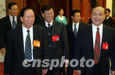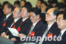 圖為郭東坡(右三)等出席中央國家機關代表團會議。