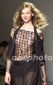 十一月正在東京舉行的二00三年春夏時裝展上,網格時裝富于黑色魅力。作者:陶光雄