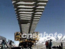 今年是青藏鐵路建設的攻堅之年,在2.5萬名建設者的日夜奮戰下,青藏鐵路建設工地捷報頻傳:昆侖山、風火山隧道貫通;三岔河、雪水河、長江源特大橋建成;清水河特大橋主體工程完工;青海境內望昆至不凍泉、不凍泉至楚瑪爾河兩個凍土路基試驗段完成;日前,青藏鐵路又順利鋪軌到昆侖山。
