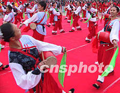 圖:福州千人腰鼓慶“十六大”勝利閉幕