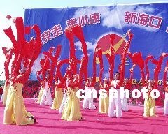 今天下午,在中共十六大勝利閉幕之際,六萬多名海口民眾歡聚萬綠園,載歌載舞,用歡慶的鑼鼓,優美的舞蹈和動情的歌聲抒發內心的喜悅和對美好將來的祝愿。