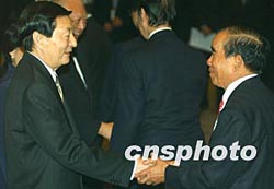 中新網香港11月19日電 國務院總理朱镕基今天下午在此間會見了香港主要商會領袖及工商金融界知名人士,與他們親切交談并合影留念。
