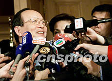 臺灣“中國臺商發展促進會”理事長章孝嚴二十二日與國務院臺辦主任陳云林就大陸臺商包機返鄉過年問題交換意見后,被港澳臺記者圍堵。作者:鄭萍萍