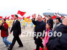 上午9:10時,國務院副總理、中國申博代表團團長李嵐清和夫人,中共中央政治局委員、國務委員、國家申博委主任吳儀,中共中央政治局委員、上海市委書記、上海市市長、國家申博委副主任陳良宇等步下舷梯,接受了四名少先隊員代表獻上的鮮花。上海市市領導到機場迎接。