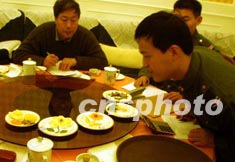解放軍駐北京某部隊二十日請地方名廚師傳授烹飪技術(shù)并為戰(zhàn)士的飯菜打分,以提高官兵的伙食質(zhì)量。作者:宋吉河