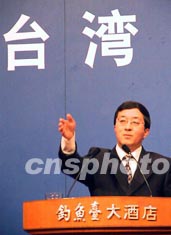 國務院臺灣事務辦公室二十五日在北京釣魚臺大酒店舉行新聞發布會,評價一年內兩岸關系的發展。圖為新聞發言人李維一先生在發布會上答記者問。作者:武仲林