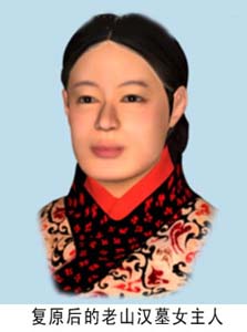 而2001年4月間,北京的媒體報道中,稱首次成功復原老山漢墓女主人的頭像,是位“西域美女”。報道引用該復原“作品”專家的解釋稱:“查閱了大量的資料及與女主人頭骨進行對照之后,從她頭骨的特點上看,這位女主人的頭像特征和新疆以北的塔吉克斯坦人——也就是現在所稱的西域人極其相似。”