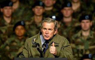 身穿綠色軍用夾克的布什對四千多名軍人及他們的家屬發表演說,他語調慷慨激昂:“我們已做好準備。”對伊拉克的戰爭并“不是去征服,而是去解放”。