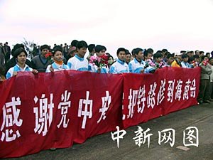 海口龍頭村八歲小朋友符小雄可能是今天迎接火車的年齡最小的一位,他對記者說,長大他要開火車,去看看外面的世界。