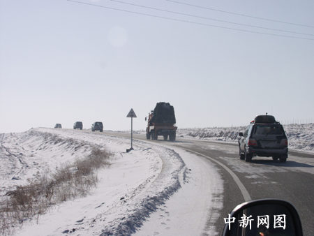 返回艙從內蒙古草原沿公路運往北京(4)孫陽 攝