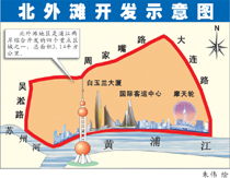 位于黃浦江邊,蘇州河以北的北外灘地區,被列為上海黃浦江新一輪綜合開發的四個重點區域之一,規劃占地面積三平方公里多,將按照航運貿易區、現代商務區、濱江休閑區等功能地塊進行開發建設。有關人士認為,開發建設成熟后的這一塊新熱土,將與上海的老外灘區和浦東陸家嘴金融貿易區形成“鼎足之勢”,共同構筑上海最為繁華絢麗的一片城市景觀。