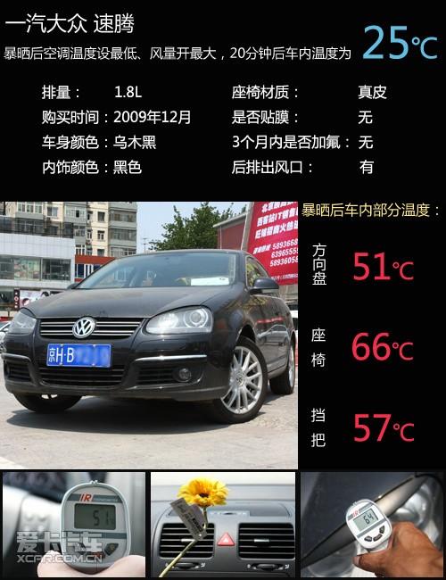 驕陽下黑內(nèi)黑外的速騰冠軍看著就給人一種燥熱感,車表溫度飚到了60度以上,車內(nèi)皮膚觸及點(diǎn)燙得難以觸碰,還好空調(diào)比較爭氣,讓車內(nèi)溫度下降很快,當(dāng)然后排出風(fēng)口也是功不可沒的。
