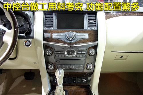 中控臺的做工與用料無需我們多言,各項功能的分布也很合理,易于前排乘客操作,在功能方面QX56將它演繹的非常極致,中央的大屏幕帶有人機交互系統,可顯示導航、空調及車輛信息等,下方還配備了雙區自動恒溫空調及電加熱開關功能。而這一切也詮釋了新QX56的豪華。