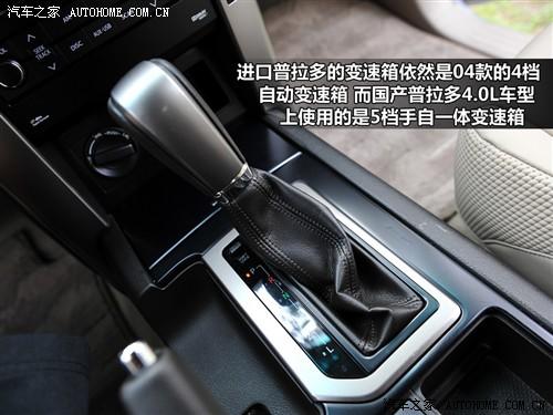 新普拉多的四幅方向盤加入了銀色裝飾條,使得整體感覺更有活力。方向盤采用真皮包裹,握起來粗細合適,手感比較出色。和老款相比,新的方向盤還集成了音響控制和藍牙電話功能。變速箱依然是老款的那個4檔自動變速箱,而國產(chǎn)新普拉多已經(jīng)升級為5檔手自一體變速箱。