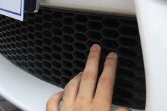 面積寬大的前保險杠上四個前側探頭一字排開,下面的進氣格柵采用蜂窩網狀,車型定位運動的身份暴露無遺。底邊兩側原本應該是被霧燈雄霸的區域,M3把這部分處理為黑色進氣口,前輪剎車片散熱勤懇服務,一拳的高度可見它一定擁有很好的胃口。