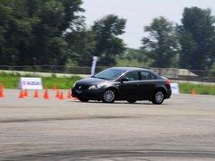 經過一圈的試乘之后,開始進入賽道試駕環節,踩下制動踏板,輕按一鍵式啟動按鈕,發動機悄然啟動后便進入平穩安靜的怠速狀態。方向盤的握感很好,EPS隨速電動助力轉向系統在低速時力度略輕而高速行駛時則很有韌勁,非常具有運動風格。