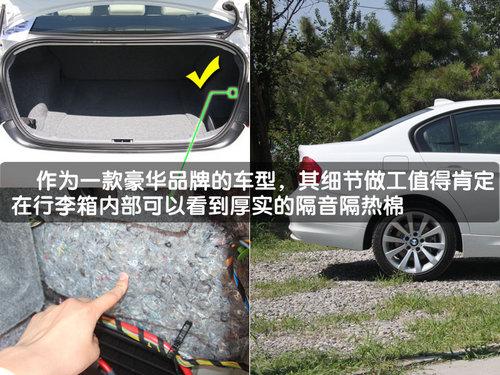 寶馬家族很受歡迎的就是其大燈部分“天使眼”的設計,在僅打開小燈(示寬燈)的情況下兩組黃色的圓環是整車的點睛之筆。應該說寶馬在全球的每一個工廠所生產的車型在品質上都不會有差異,所以我們看到這款來自德國慕尼黑工廠的320i在細節上也是與華晨寶馬生產的3系做工完全一致,在行李箱內部的襯板背后是非常厚實的隔音、保溫材質,整車的靜音性和舒適性大為提升。