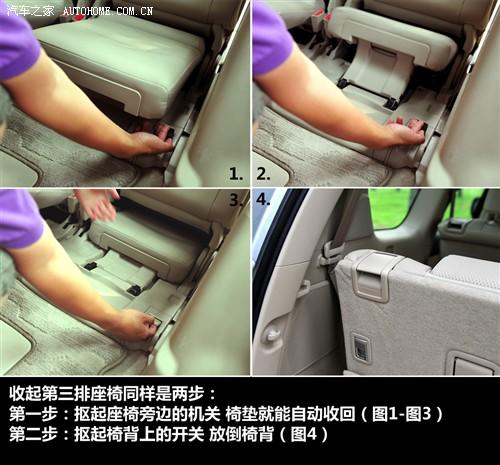 既然要講第三排座椅的詳細體驗,當然要先講講如何打開它。其實第三排座椅的開啟方法非常簡單,只需兩步即可。第一步,從后備廂處將座椅的椅背拉起來;第二步,繞回到座椅前方,從椅背下面將坐墊拉出來就完成了。