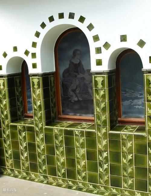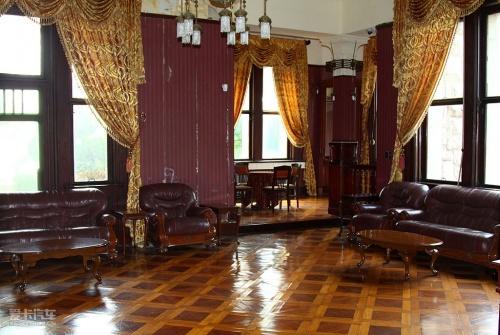 樓內裝飾陳設異常華麗:銅制燈具、彩瓷鑲嵌壁爐依然光亮如新、雕花的天花板造型各異。