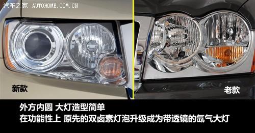 新款大切大燈外方內(nèi)圓,造型很簡(jiǎn)單,與前臉的造型風(fēng)格貼切;在功能性上,由原先的雙鹵素?zé)襞萆?jí)為更強(qiáng)的透鏡氙氣大燈。