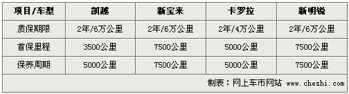 別克新凱越首保時(shí)間是四款車(chē)型中最短的,但廠家提供前兩次免費(fèi)保養(yǎng),這點(diǎn)看來(lái)還比較貼心。18500公里結(jié)算后,543元的總保養(yǎng)金額是四款車(chē)中最少的一個(gè)。新寶來(lái)和新明銳同為大眾品牌下車(chē)型,但由于合作商不同,保養(yǎng)的費(fèi)用還是存在一些細(xì)微的差距,都在2600元范圍內(nèi)。日系車(chē)一貫是經(jīng)濟(jì)實(shí)惠見(jiàn)長(zhǎng),但在后期保養(yǎng)的方面豐田卡羅拉的費(fèi)用卻是四款車(chē)中最高的,超過(guò)3000元的數(shù)字也是新凱越保養(yǎng)費(fèi)用的5倍多。