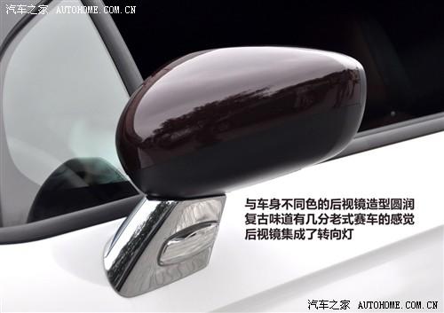 帶有鍍鉻裝飾的后視鏡造型圓潤,有幾分與老式賽車的感覺,并集成了轉(zhuǎn)向燈,后視鏡面積不小,相信視野應(yīng)該也不會差。