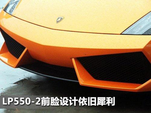 作為一款蘭博基尼的跑車,GallardoLP 550-2在外觀上依舊犀利運動,鉆石切割式外觀線條設計融合在整個外觀設計中,黑色深邃的前大燈更顯運動,大面積的蜂窩狀進氣格柵則是空氣動力學的完美展現。
