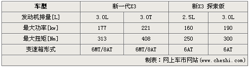 動力部分,老款X3搭載兩款自然吸氣發動機,排量分別為2.5L和3.0L。其3.0L發動機最大功率輸出達到190千瓦,最大扭矩達到300N.m。新一代X3共搭載兩款發動機,排量分別為3.0L和3.0T。3.0T發動機,新X3搭載心臟最大功率輸出達到221千瓦,最大扭矩達到408N.m。全新的動力技術帶來了更加爽快的動力感受。