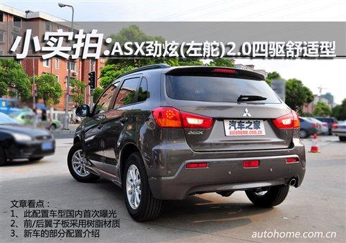 從已曝光的三菱ASX勁炫中國版車型的參數(shù)和配置來看,很可能有5款車型上市:2.0兩驅(qū)標(biāo)準(zhǔn)型、2.0兩驅(qū)舒適型、2.0兩驅(qū)豪華型、2.0四驅(qū)舒適型、2.0四驅(qū)豪華型,預(yù)售價(jià)區(qū)間為18萬~24萬元之間。在ASX勁炫上市前的7月20日,汽車之家對(duì)2.0四驅(qū)舒適型進(jìn)行了詳細(xì)的到店實(shí)拍。不過,由于之前我同事的實(shí)拍和試駕文章較為詳細(xì),本文就不再過多介紹外觀和內(nèi)飾等可能重復(fù)的部分,重點(diǎn)放在之前沒有提到過的一下小部分和配置上吧。