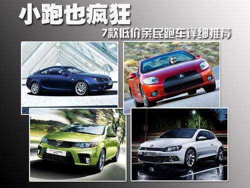 能擁有一輛屬于自己的超級跑車,一直是所有愛好速度的車迷們最終的夢想。想象一下,慵懶的周末下午,自己開著名車大廠的頂級座駕,招搖的見過城市的條條街道,必定會引來無數(shù)羨慕的眼光。不過歸為現(xiàn)實(shí),這些招人眼球的跑車價(jià)值昂貴的程度也跟他們的造型一樣,令人乍舌。這時(shí),小跑的優(yōu)勢都凸現(xiàn)出來了,在能滿足您張揚(yáng)的個(gè)性和性能的基本要求的情況下,低廉的價(jià)格是它們的殺手锏。今天網(wǎng)上車市就為這一部分車迷帶來了福音,推薦給您8款親民跑車詳細(xì)推薦。