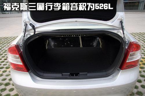 新款福克斯延用了福特動感設計的理念,引擎蓋前方的鍍鉻金屬飾條是福特家族最新的設計手法,不但充分顯示出?怂箘痈袝r尚的外觀,也延續了福特家族顯著的品牌特征。大嘴進氣隔柵的變化,讓?怂沟那澳樋瓷先ジ邲_擊力。