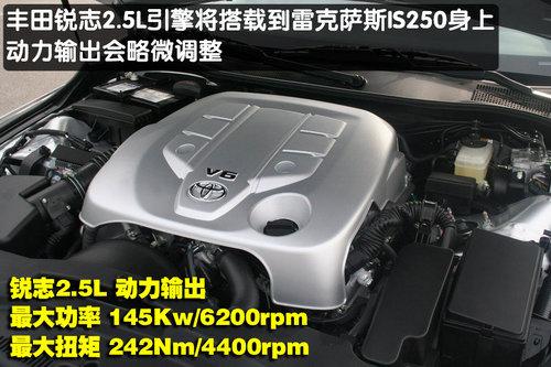 IS系列是雷克薩斯家族中最年輕、最有動感的車型。目前銷售的雷克薩斯IS全系車型均搭載了3.0升V型6缸高功率發動機,通過后輪驅動,動力性能十分出眾。近日我們從雷克薩斯內部人士處獲悉到,雷克薩斯為了復合“低碳生活”的標準,將推出即ES240之后的第二款低排量車型IS250(目前除ES240外其余在售車型均為3.0L以上排量)。雷克薩斯IS250最晚將于8月底到店,預計售價在37-40萬。