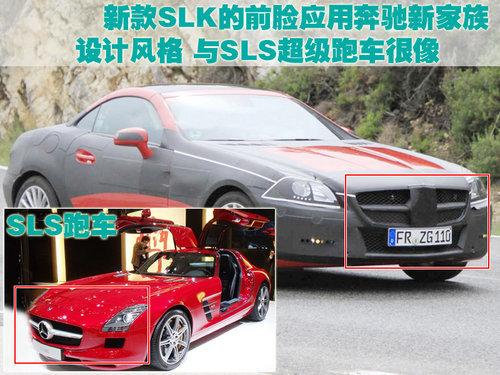 奔馳新SLK車型將保留目前車型上的整體設計風格,但將融入一些SLS的車型風格。其前進氣格柵的設計與奔馳SLS十分相似,整體外觀將較老款車型更加寬大。