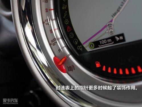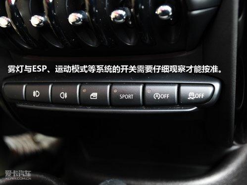 中控臺的設計和布局與其他MINI車型相似,從上而下順序排列的是CD、恒溫空調、復古式電動窗的控制按鍵,最下面一排的位置則有些別扭,霧燈與ESP、運動模式等系統的開關需要仔細觀察才能按準。