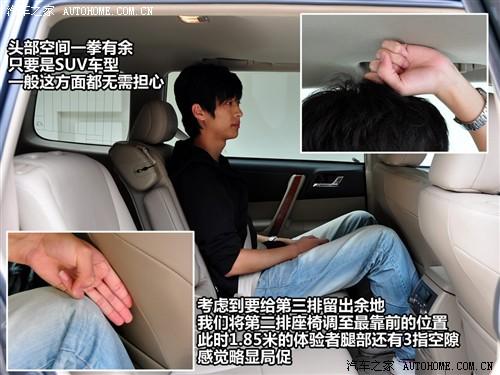 漢蘭達3.5升車型都為7座,由于車身比較寬大,使得它的第三排座椅容下兩個胖子也問題不大,或許是為了照顧第三排的空間,第二排座椅的空間不算特別寬敞,身高為1.85米的乘客調到合適的駕駛位置,后排腿部到前排只剩下3指的余量。關于漢蘭達的詳細體驗和測試文章,請參看以下鏈接。