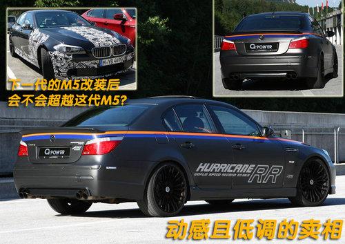 G – Power打造的這款M5是以老款的M5為基礎(chǔ),在本已經(jīng)非常強(qiáng)大的V10發(fā)動(dòng)機(jī)倉(cāng)中加裝了兩個(gè)渦輪增壓器,通過(guò)一系列的電腦以及油路等相關(guān)調(diào)校,讓老款的M5的動(dòng)力性甚至超過(guò)了V12發(fā)動(dòng)機(jī)。超過(guò)370km/h的最高時(shí)速比拼F1賽車(chē)。
