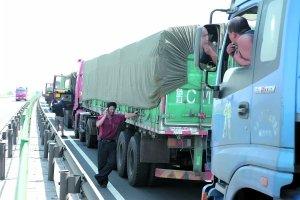 在興和收費站和集寧收費站,開始限制大型貨車進入京藏高速進京路段。但是仍有從涼城、呼和浩特等地駛來的貨車不斷延長堵車隊伍。