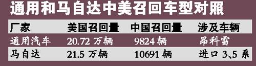 昨日通用、馬自達、日產(chǎn)計劃合共召回超過40萬輛轎車,本報記者發(fā)現(xiàn)其中通用、馬自達在中國的召回令發(fā)出時間比美國還要早,與寶馬的在華召回形成了反差,從一個側(cè)面反映出誰真正把中國市場放在首位。