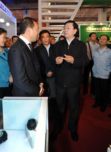 9月26日,中共中央政治局委員、國務院副總理張德江在北京參觀第四屆中國國際汽車零部件博覽會。新華社記者 李濤 攝