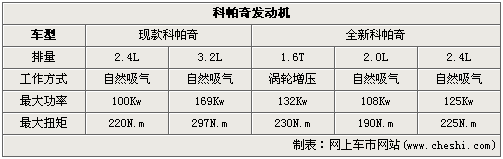 全新?lián)Q代科帕奇除了外觀的改變以外,通用還在其動(dòng)力部分進(jìn)行了大刀闊斧的改動(dòng),做了一整套的“心臟”移植手術(shù),用同為麾下愛將的別克新君威1.6T、2.0L、2.4L三款發(fā)動(dòng)機(jī)代替了現(xiàn)款科帕奇2.4L、3.2L引擎。表中可以清晰的體現(xiàn)出,兩代2.4L發(fā)動(dòng)機(jī)動(dòng)力輸出差距不小,而搭載1.6T發(fā)動(dòng)機(jī)的版本將在全新科帕奇布局中處于高位。