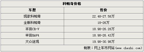 進(jìn)口車型在性價(jià)比方面一直存在著一條不可逾越的鴻溝,這從現(xiàn)款科帕奇年中調(diào)價(jià)就可以看出端倪。此次全新一代科帕奇國產(chǎn)以后,價(jià)格勢(shì)必將會(huì)進(jìn)一步走低,按照車型的定位推斷,新款推出時(shí)價(jià)格將會(huì)與本田CR-V、大眾途觀等熱銷車型基本持平。由此看來,合資品牌SUV大混戰(zhàn)中又要有一員來自美國的勇士殺入包圍圈,消費(fèi)者們也不用再死盯著那幾款風(fēng)口浪尖上的車型不放了。