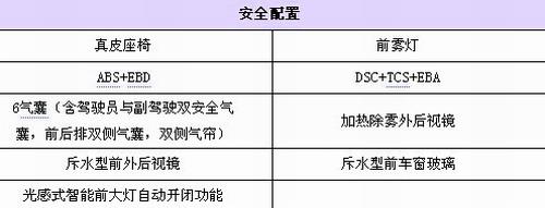 安全配置方面,新車將搭載ABS+EBD、DSC+TCS+EBA、前霧燈、6安全氣囊、斥水型前外后視鏡(可加熱除霧)/車窗玻璃、帶自動開閉功能的光感式智能大燈。