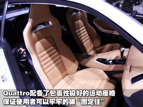 奧迪Quattro概念車兩個座椅均采用了桶形運動座椅,并且包裹性十分好。主駕和副駕人員坐在上面可以盡情享受駕駛帶來的樂趣,根本不用為“被拋出”所擔(dān)憂。
