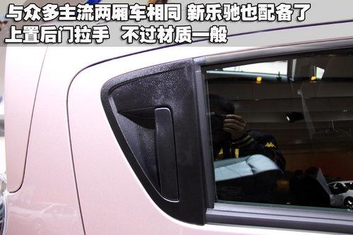 當下很多車型都開始采用后門上置拉手設(shè)計,這樣的設(shè)計不僅造型比較新穎,而且使用起來也十分便利。不過新樂馳的的把手造型和用料都比較一般,如果設(shè)計成半圓形或其它造型可能會更符合外觀整體的定位。