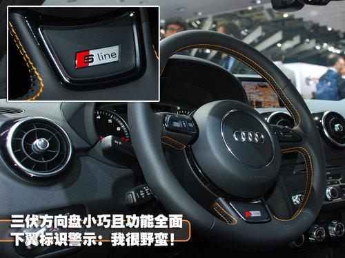 方向盤是車主最長接觸愛車的地方,A1也把這里當作彰顯它特堵特性的位置。真皮包裹的質(zhì)感很棒,橙色的縫線經(jīng)過內(nèi)側(cè)輪廓得到強化。兩個側(cè)翼設(shè)計有多功能按鍵,為用戶提供了方便安全的操作,下翼吧“S line”標識再次嵌入,時刻提醒駕駛者這臺A1擁有著不平凡的身份和勁道。