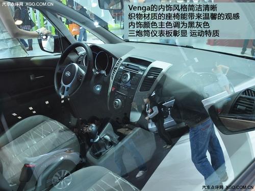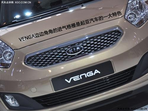 起亞Venga外觀造型與曾亮相日內(nèi)瓦車展的No.3概念車相仿,長4068mm,寬1765mm,高1600mm,軸距為2615mm,其后排座椅可以放倒。其內(nèi)飾將經(jīng)過巧妙的設(shè)計(jì)使內(nèi)部空間最大化。